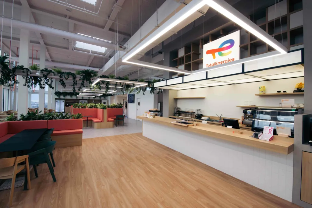 TotalEnergies est extrêmement satisfaite de sa collaboration avec Group Jansen. Notre groupe de construction intégrée a combiné diverses expertises telles que les technologies intelligentes, l’électrotechnique, les murs modulaires, la peinture, les planchers surélevés, etc., et a assuré le fil conducteur écologique tout au long du projet. Le résultat ? Un siège social inspirant et durable qui correspond parfaitement à la mission et aux valeurs de TotalEnergies.