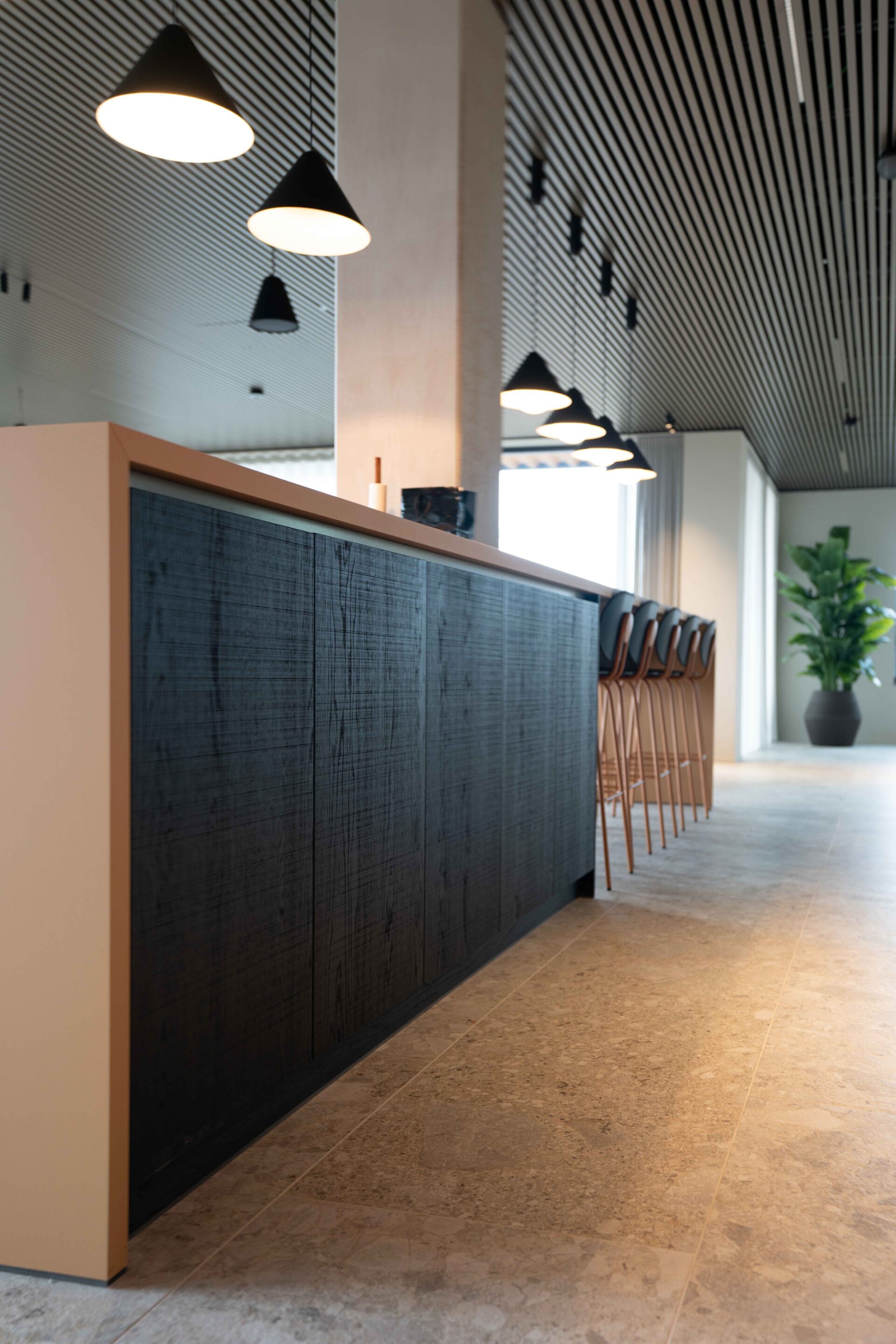 Open werkzones worden afgewisseld met gesloten vergaderruimtes, waardoor een gezonde balans ontstaat tussen samenwerking en focus. De warme materialen, doordachte indeling en hoogwaardige afwerking creëren een professionele maar uitnodigende werkomgeving.